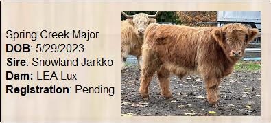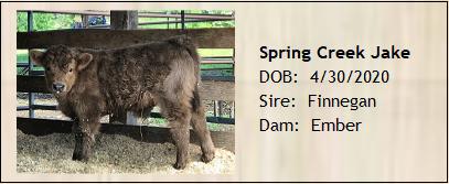 Spring Creek Delta was an early surprise born in November 2015. She wasn't expected until February 2016. Her dam is Spring Creek Georgia. Her sire is Skye High Capone from whom we expect many more beautiful calves.
